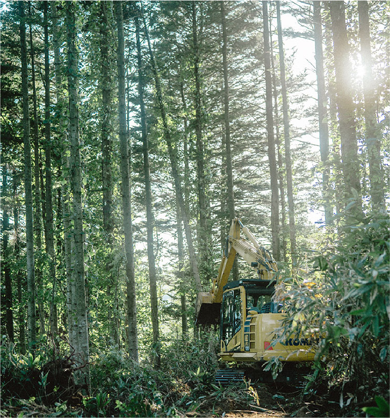 - 森林所有者から山林を買取木材の生産、森林管理などを行います。