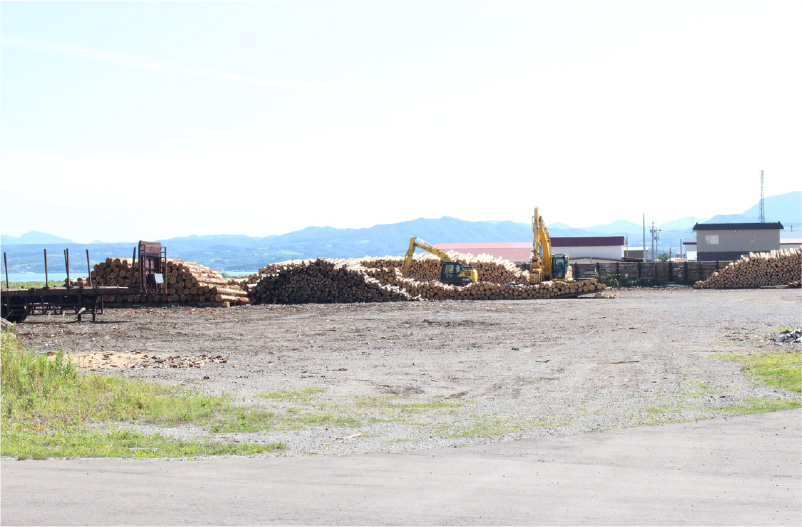 当社では複数の資材置場があり、森林で伐採された丸太を保管します。当社では一年を通して木材生産を行い豊富に資材を調達しております。保管された丸太は商社や製材所などへ販売されます。